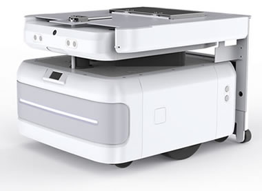無人搬運車召喚送物模式,按鈕一鍵召喚機器人前往召喚點,按鍵選擇需要機器人配送的目標點,機器人完成配送任務后自主返回充電樁,1臺貨架配置