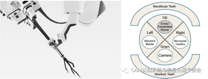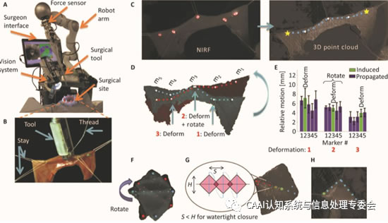 自動(dòng)化是手術(shù)機(jī)器人的重要發(fā)展方向,在醫(yī)療L域由于其特殊性目前自動(dòng)化的程度相對(duì)于工業(yè)、服務(wù)以及特種L域均較低。目前機(jī)器人輔助手術(shù)(RASs)的模式完全取決于單個(gè)外科醫(yī)生的手動(dòng)能力。自動(dòng)機(jī)器人手術(shù)可以保證手術(shù)效率和安全性的提G,并改善優(yōu)化手術(shù)技術(shù)。由于技術(shù)上的限制,涉及軟組織的手術(shù)尚未d立進(jìn)行,包括缺乏能夠在動(dòng)態(tài)手術(shù)環(huán)境中識(shí)別和跟蹤目標(biāo)組織的視覺(jué)系統(tǒng),以及缺乏能夠執(zhí)行復(fù)雜手術(shù)任務(wù)的智能算法。美國(guó)約翰霍普金斯大學(xué)[3]通過(guò)增強(qiáng)視覺(jué)、靈巧性和互補(bǔ)的機(jī)器智能來(lái)改善手術(shù)效果、安全性,實(shí)現(xiàn)軟組織變形的自動(dòng)跟蹤、監(jiān)測(cè)以及吻合。通過(guò)實(shí)驗(yàn)證明,自主機(jī)器人可以提G手術(shù)的效率、一致性、功能結(jié)果和可行性。
