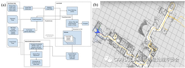 Cartographer[1]是google在2016年開源[2]的跨平臺和傳感器配置,并提供2D和3D實時同步定位和建圖的SLAM系統(tǒng),主要通過閉環(huán)檢測來消除構圖過程中產(chǎn)生的累積誤差,以達到融合多傳感器數(shù)據(jù)的局部submap創(chuàng)建和用于閉環(huán)檢測的scan match策略的實現(xiàn)。主要包括cartographer和Cartographer_ros兩部分,其中cartographer為底層實現(xiàn),主要負責處理來自Laser、IMU、Odemetry的數(shù)據(jù)并基于這些數(shù)據(jù)進行地圖的構建。cartographer_ros是基于cartographer的上層應用,主要負責從ros的通信機制獲取傳感器的數(shù)據(jù)并將它們轉換成cartographer中定義的格式傳遞給cartographer處理,與此同時也將cartographer的處理結果用于發(fā)布、顯示或保存。